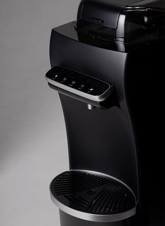 ボタンを押せばいつでも、冷水、常温水、温水を楽しむことができます。